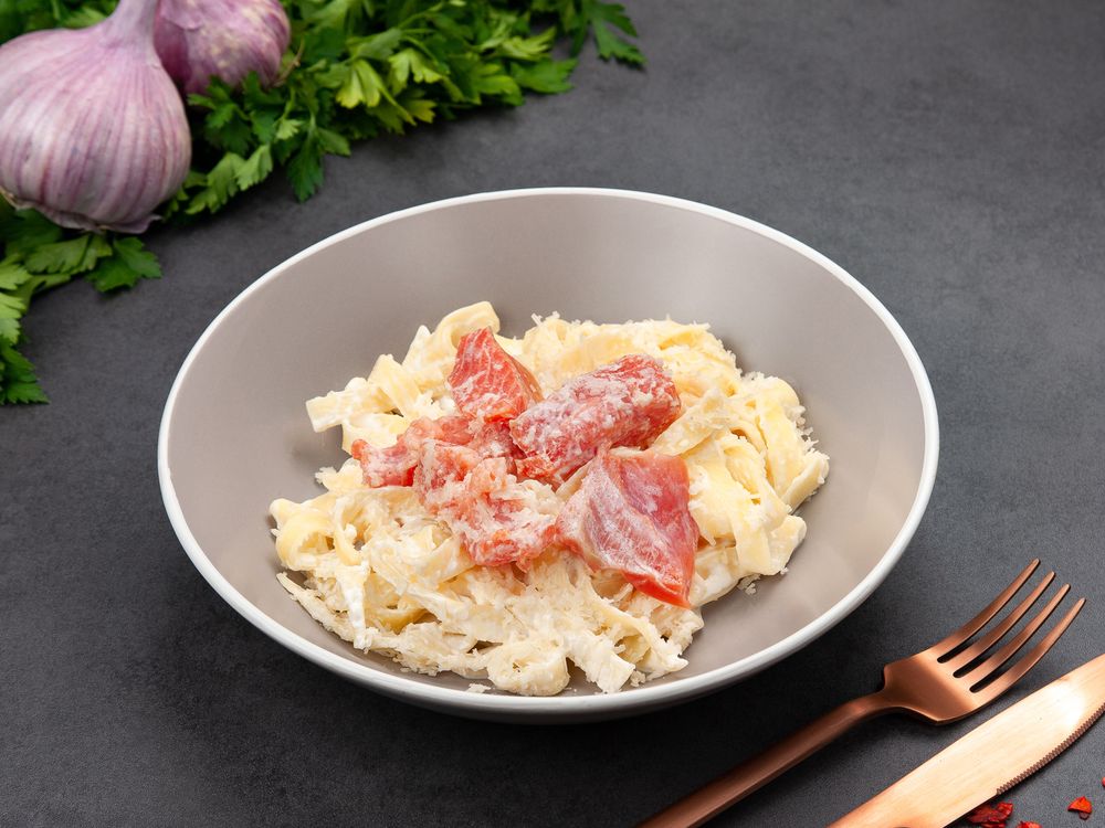 Фетучини, семга, сливки, чеснок, пармезан